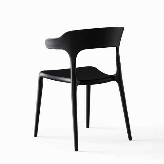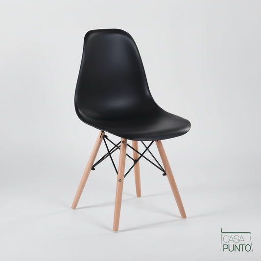 Silla de Comedor Nórdica Ellis - Plástico Negro con Patas de Madera Estilo Escandinavo