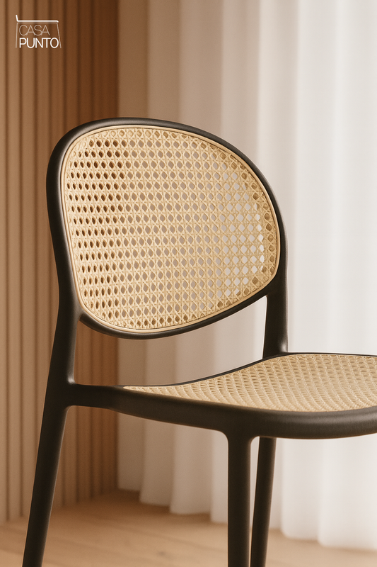 • Silla de comedor apilable Dina - Con respaldo de ratán