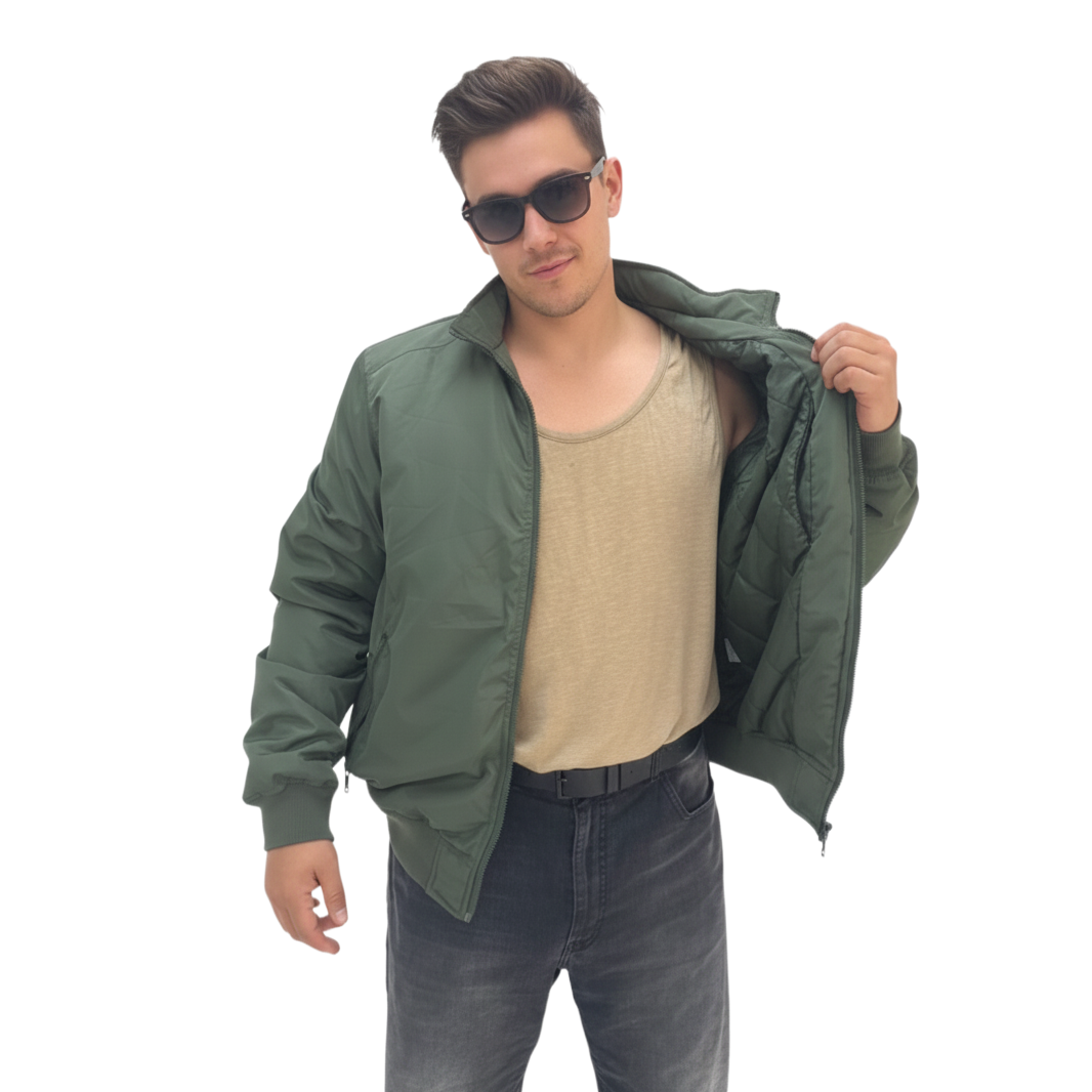 Give your style an instant upgrade with this jacket designed for the man who wants to look good without sacrificing comfort. Its modern finish and solid color make it a key piece for any outfit, from casual to urban. Made with durable material for everyday wear and a quilted lining, it features a high-quality front zipper, side pockets for maximum practicality, and elastic cuffs that ensure a perfect fit. It's lightweight, comfortable, and versatile, ideal for year-round wear. If you're looking for a jacket that combines durability, style, and functionality, this is the piece you need in your wardrobe