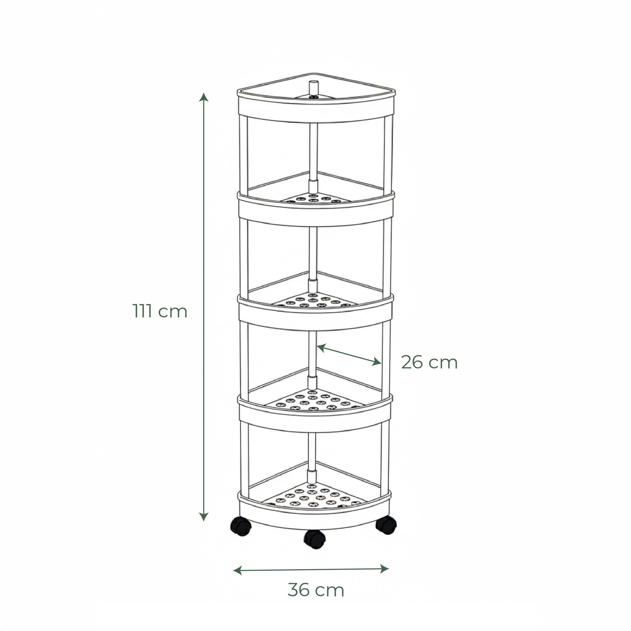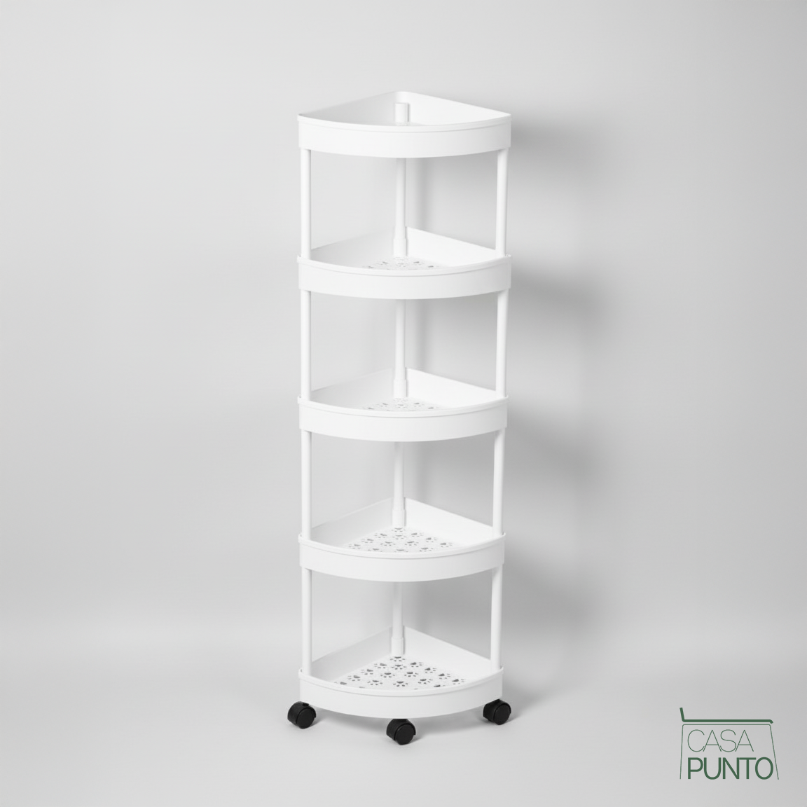 Transform unused corners into organized storage powerhouses. The Hodun 5-tier mobile corner shelf from the CASA PUNTO collection is the ultimate space-saving solution that maximizes vertical storage in tight spaces with smart triangular design. This isn't just a corner shelf—it's a complete mobile organization system with five spacious tiers, smooth-rolling wheels, and a sleek white finish that brings order and style to your kitchen, bathroom, laundry room, or any corner that needs smart storage.