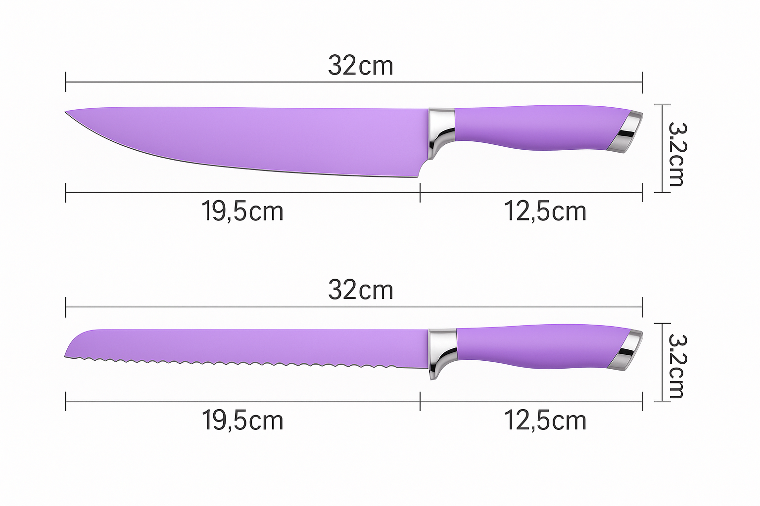 - Stainless steel knives with eco-friendly purple wheat straw handles provide precision cutting