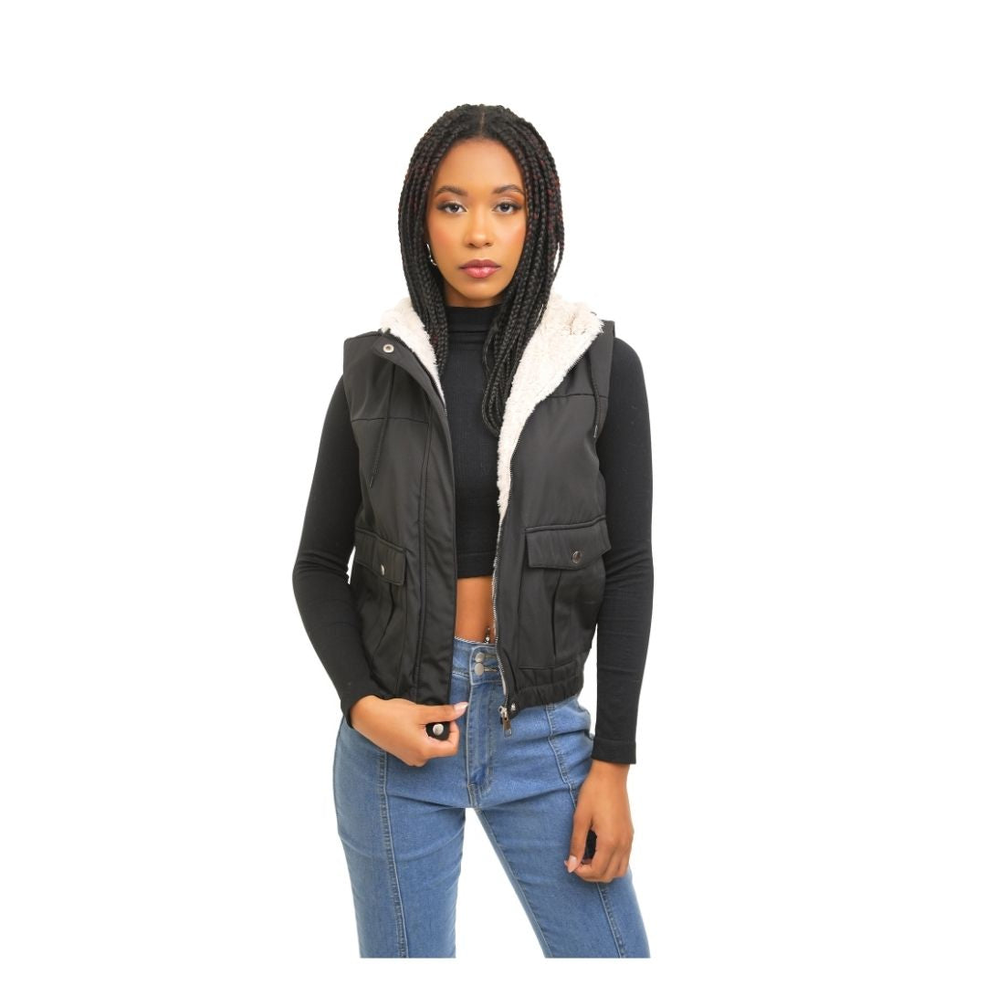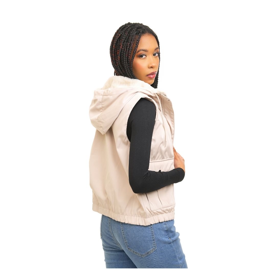 Este chaleco versátil se adapta a looks deportivos o casuales de fin de semana; combínalo con leggings, jeans o faldas plisadas para un estilo juvenil. Te protege del frío sin restringir el movimiento del brazo. El interior está forrado con un material suave y afelpado (sherpa o forro polar) para una sensación cálida y acogedora, y la funcional capucha con forro afelpado ofrece protección adicional contra el viento. Los bolsillos frontales con solapa y cierres a presión mantienen sus pertenencias seguras y una cremallera frontal de alta calidad brinda mayor seguridad. Perfecta para temporadas de transición (otoño-primavera) o inviernos suaves. Diseñado para una apariencia moderna y adaptable, es ideal para entornos urbanos, ropa casual o actividades al aire libre. El corte recto favorece a distintos tipos de cuerpo. ¡El corte entallado garantiza un look moderno y cómodo!