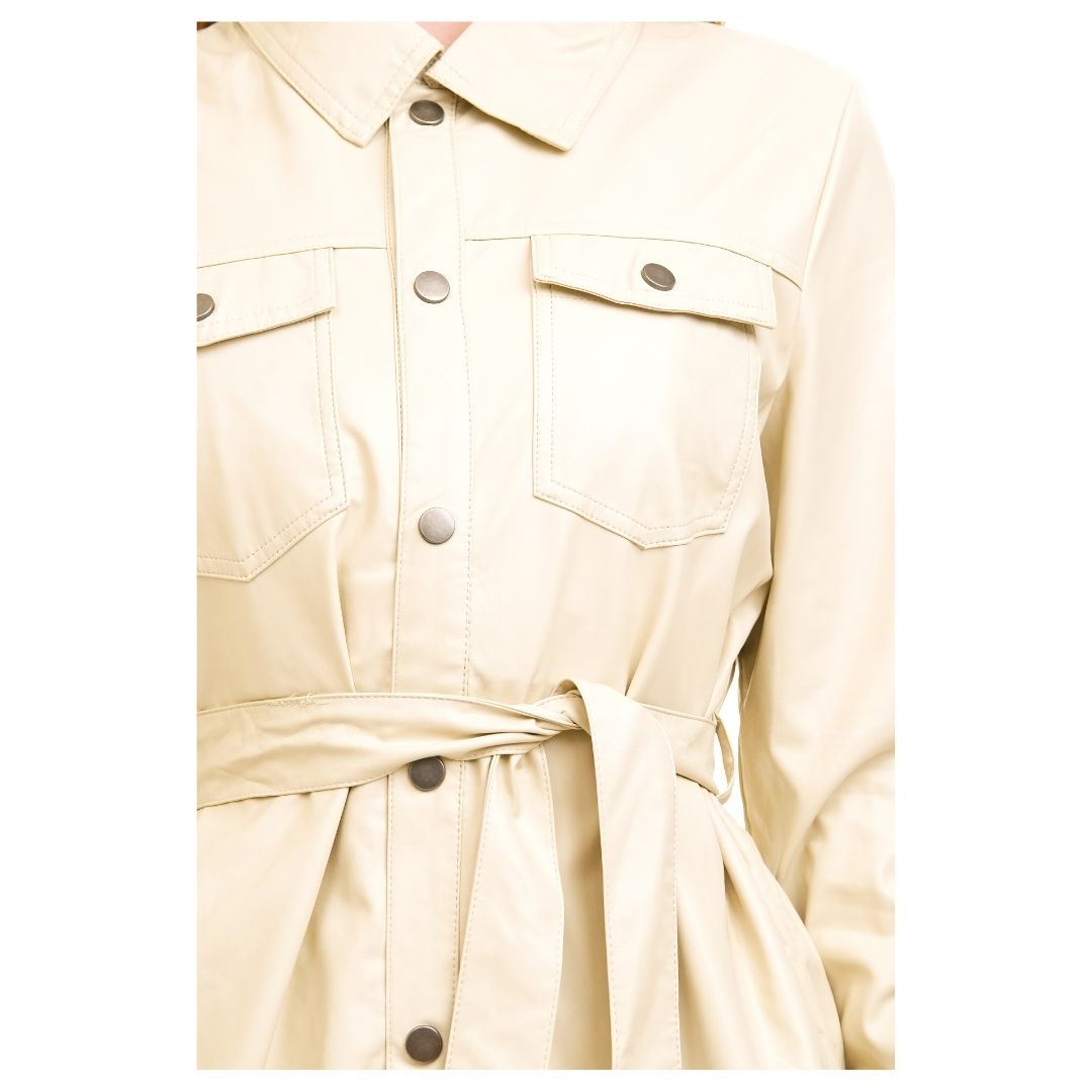 Diseño elevado con una tela suave y discretos botones metálicos. Incluye cinturón para ceñir la cintura, creando una silueta femenina y elegante. Dos bolsillos de parche con solapa y cierre de botones en el pecho añaden un toque práctico. Los puños abotonados te permiten ajustar el ancho de las mangas o llevarlas enrolladas. Perfecto para usar sobre camisetas o blusas cortas durante el clima de transición.