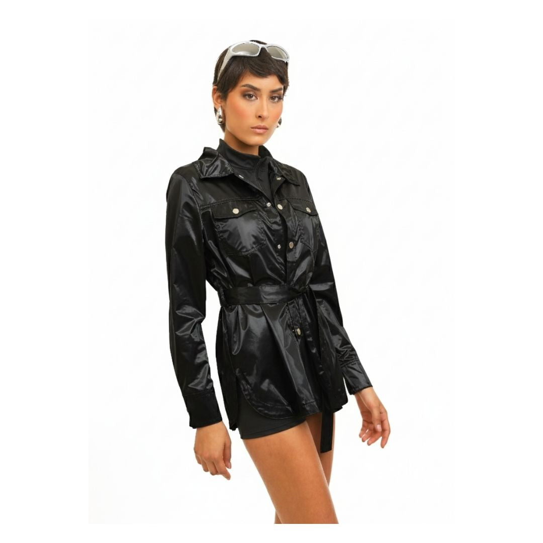 Diseño elevado con una tela suave y discretos botones metálicos. Incluye cinturón para ceñir la cintura, creando una silueta femenina y elegante. Dos bolsillos de parche con solapa y cierre de botones en el pecho añaden un toque práctico. Los puños abotonados te permiten ajustar el ancho de las mangas o llevarlas enrolladas. Perfecto para usar sobre camisetas o blusas cortas durante el clima de transición.
