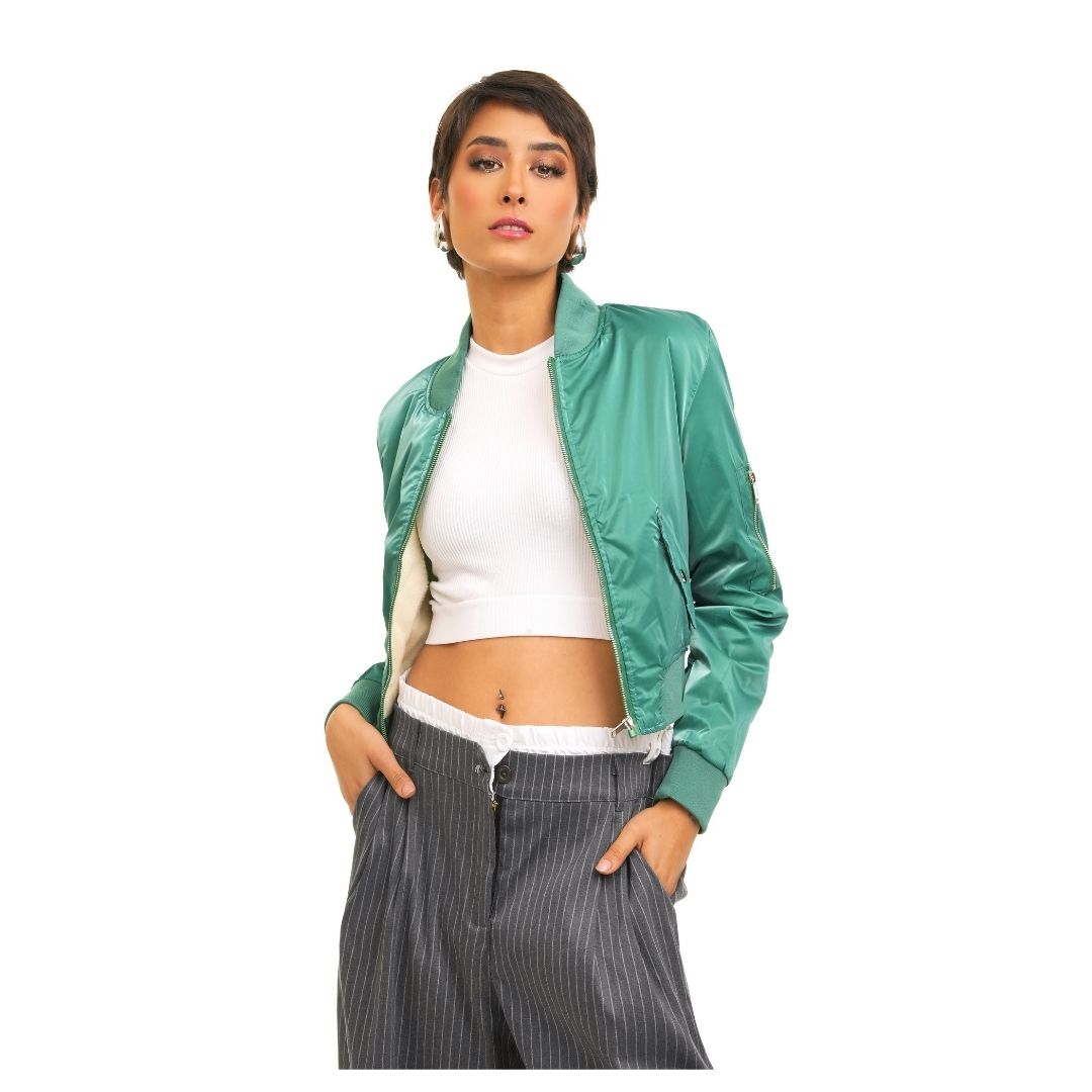 Chaqueta bomber, silueta moderna que se ciñe a la cintura con elástico. Puños elásticos: evitan corrientes de aire. Cuello bomber: cuello corto acanalado. Estilo callejero y juvenil. Ideal para completar outfits con jeans de cintura alta. Protección, comodidad y estilo urbano, todo en una sola prenda. Diseñado para acompañarte en tus aventuras al aire libre.