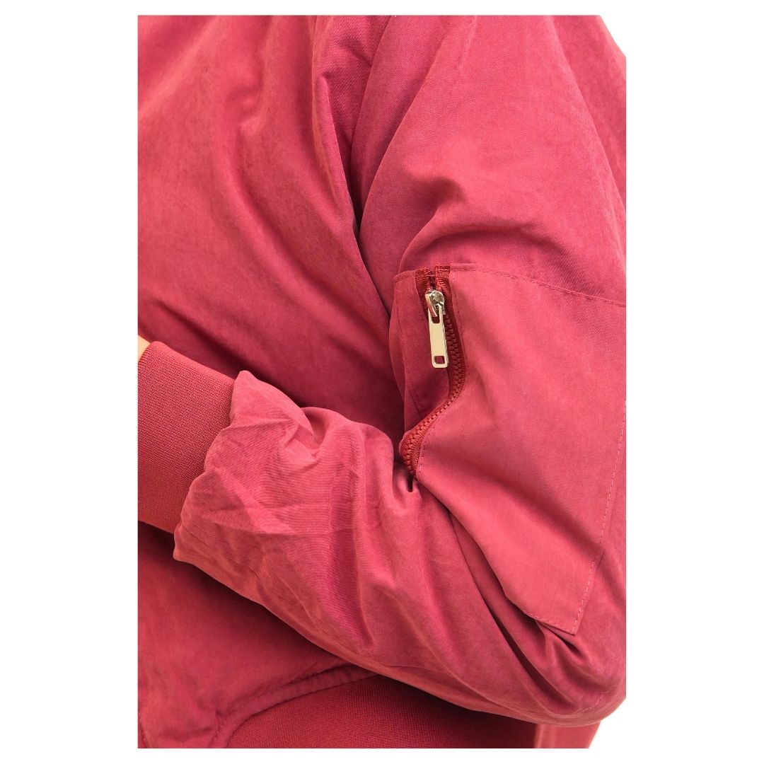 Chaqueta bomber, silueta moderna que se ciñe a la cintura con elástico. Puños elásticos: evitan corrientes de aire. Cuello bomber: cuello corto acanalado. Estilo callejero y juvenil. Ideal para completar outfits con jeans de cintura alta. Protección, comodidad y estilo urbano, todo en una sola prenda. Diseñado para acompañarte en tus aventuras al aire libre.