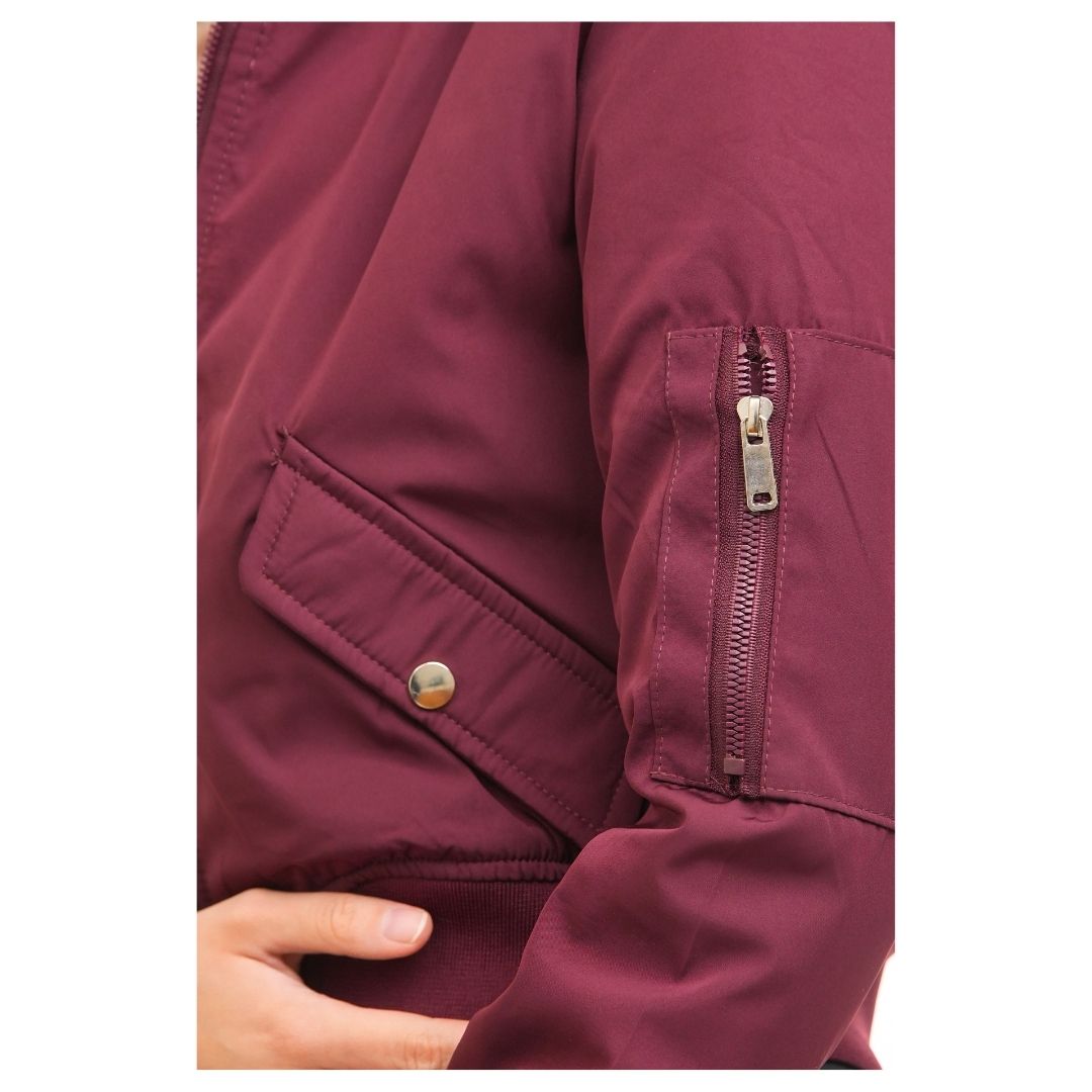 Chaqueta bomber, silueta moderna que se ciñe a la cintura con elástico. Puños elásticos: evitan corrientes de aire. Cuello bomber: cuello corto acanalado. Estilo callejero y juvenil. Ideal para completar outfits con jeans de cintura alta. Protección, comodidad y estilo urbano, todo en una sola prenda. Diseñado para acompañarte en tus aventuras al aire libre.