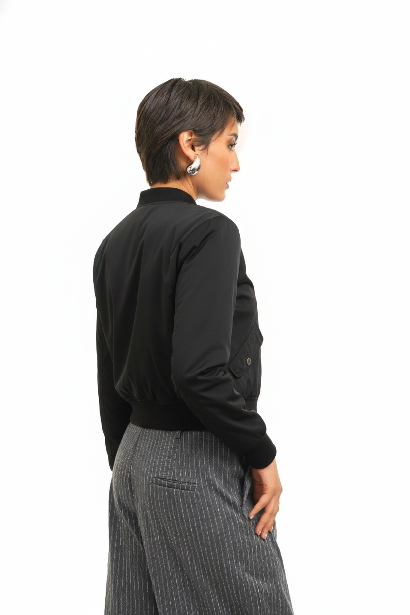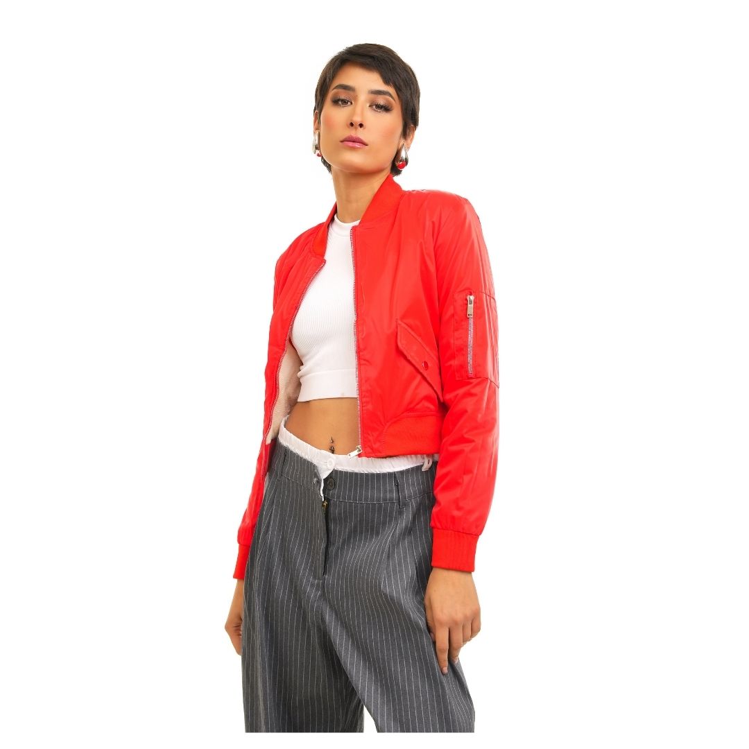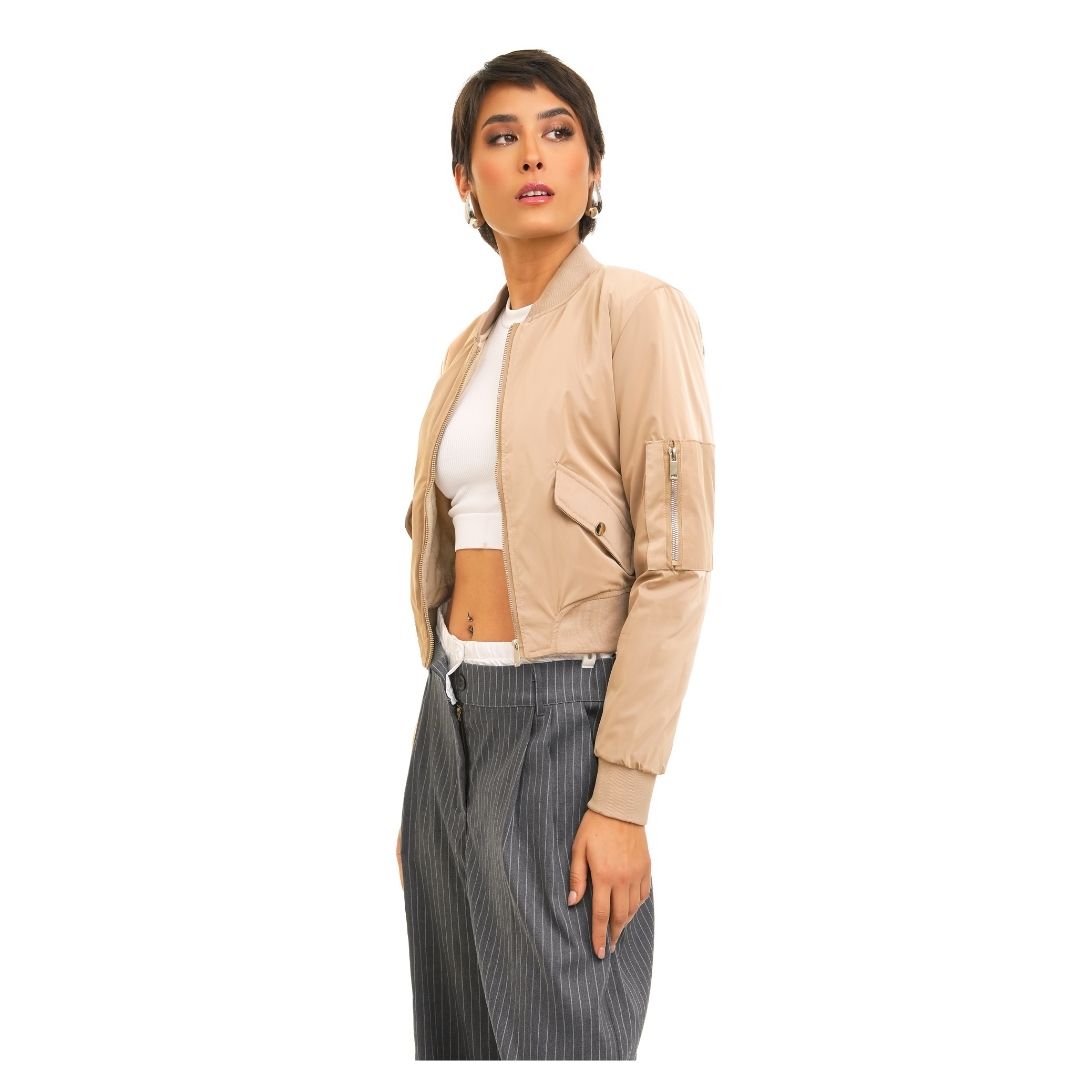 Chaqueta bomber, silueta moderna que se ciñe a la cintura con elástico. Puños elásticos: evitan corrientes de aire. Cuello bomber: cuello corto acanalado. Estilo callejero y juvenil. Ideal para completar outfits con jeans de cintura alta. Protección, comodidad y estilo urbano, todo en una sola prenda. Diseñado para acompañarte en tus aventuras al aire libre.
