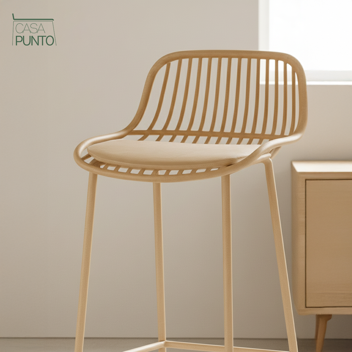 Aporta elegancia nórdica a tu comedor con el taburete de bar Kerstin de la colección CASA PUNTO. Esta trona combina un diseño escandinavo minimalista con una construcción metálica duradera, creando un equilibrio perfecto entre estilo y funcionalidad.