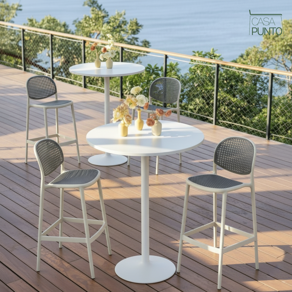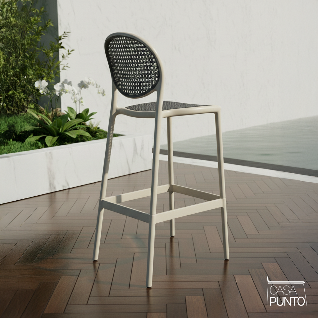 Esta no es solo una cara bonita: está diseñada para la vida real. El asiento es amplio y cómodo, perfecto para largas conversaciones tomando un café o un vino. Su altura es ideal para mostradores de cocina y mesas de bar estándar, y su construcción robusta lo hace adecuado tanto para uso interior como exterior. Ya sea que esté amueblando un restaurante, una isla de cocina en casa o una terraza, Hedda aporta elegancia instantánea y un toque de sofisticación continental.