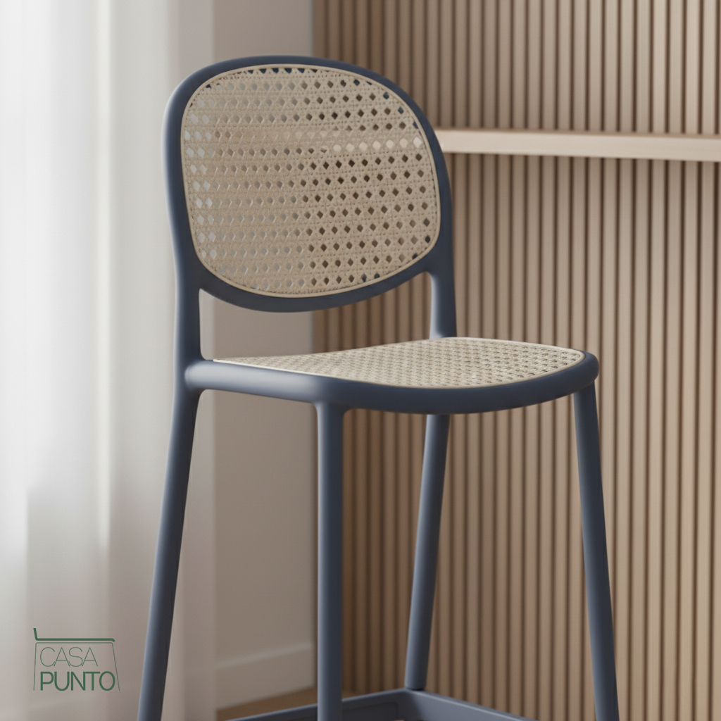 Lleva el encanto de un bistró parisino a tu hogar. El taburete de bar Hedda de la colección CASA PUNTO es una obra maestra de diseño atemporal. Su respaldo presenta un elegante tejido de imitación de ratán en un tono cálido, creando esa clásica textura "cannage" que evoca la cultura del café europeo. El marco, con un sofisticado acabado en grafito, proporciona un contraste sorprendente y una durabilidad excepcional.