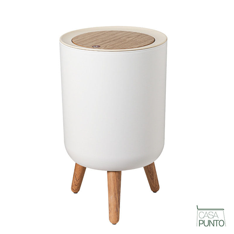 La tapa a juego, con un elegante acabado en madera, se abre con un simple toque (mecanismo press-top), manteniendo los residuos ocultos de forma discreta y silenciosa. Con una capacidad de 7 litros, es el tamaño ideal para su baño, oficina en casa o dormitorio, donde el estilo es tan importante como la función.
