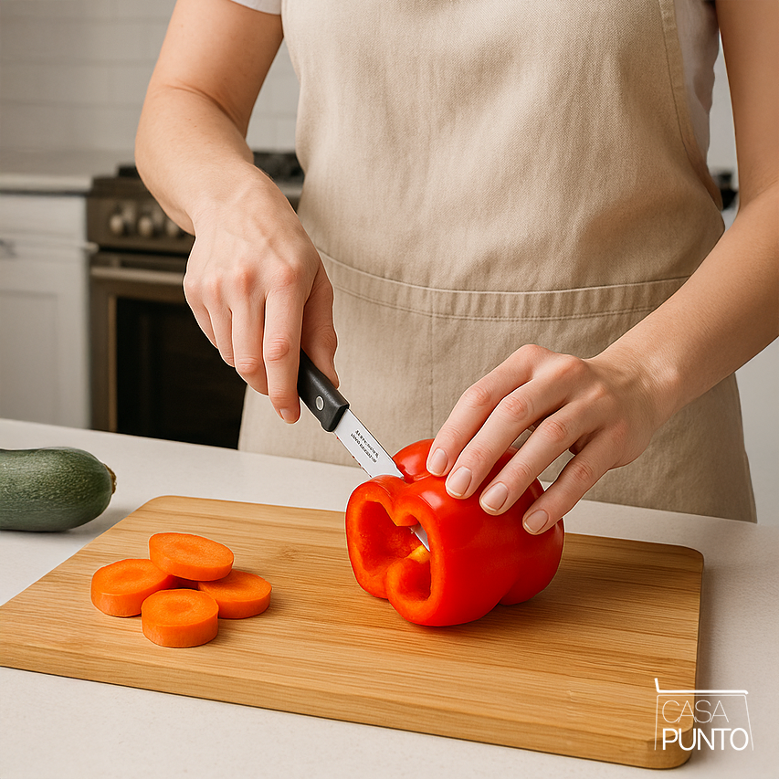 - Los mangos clásicos con triple remache garantizan durabilidad, equilibrio y apariencia profesional