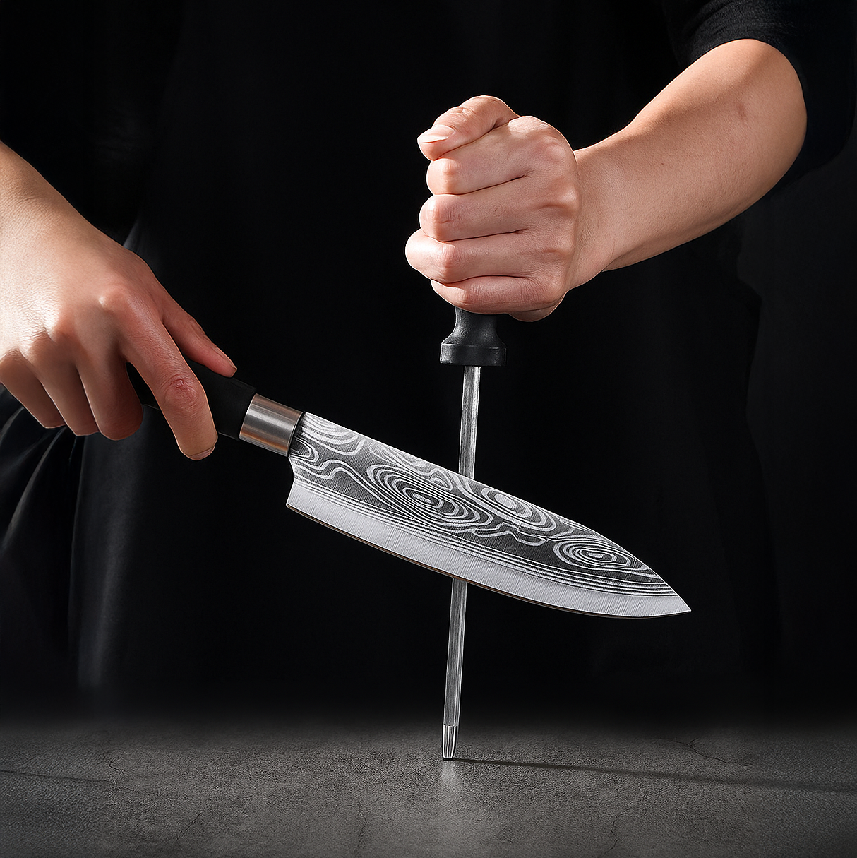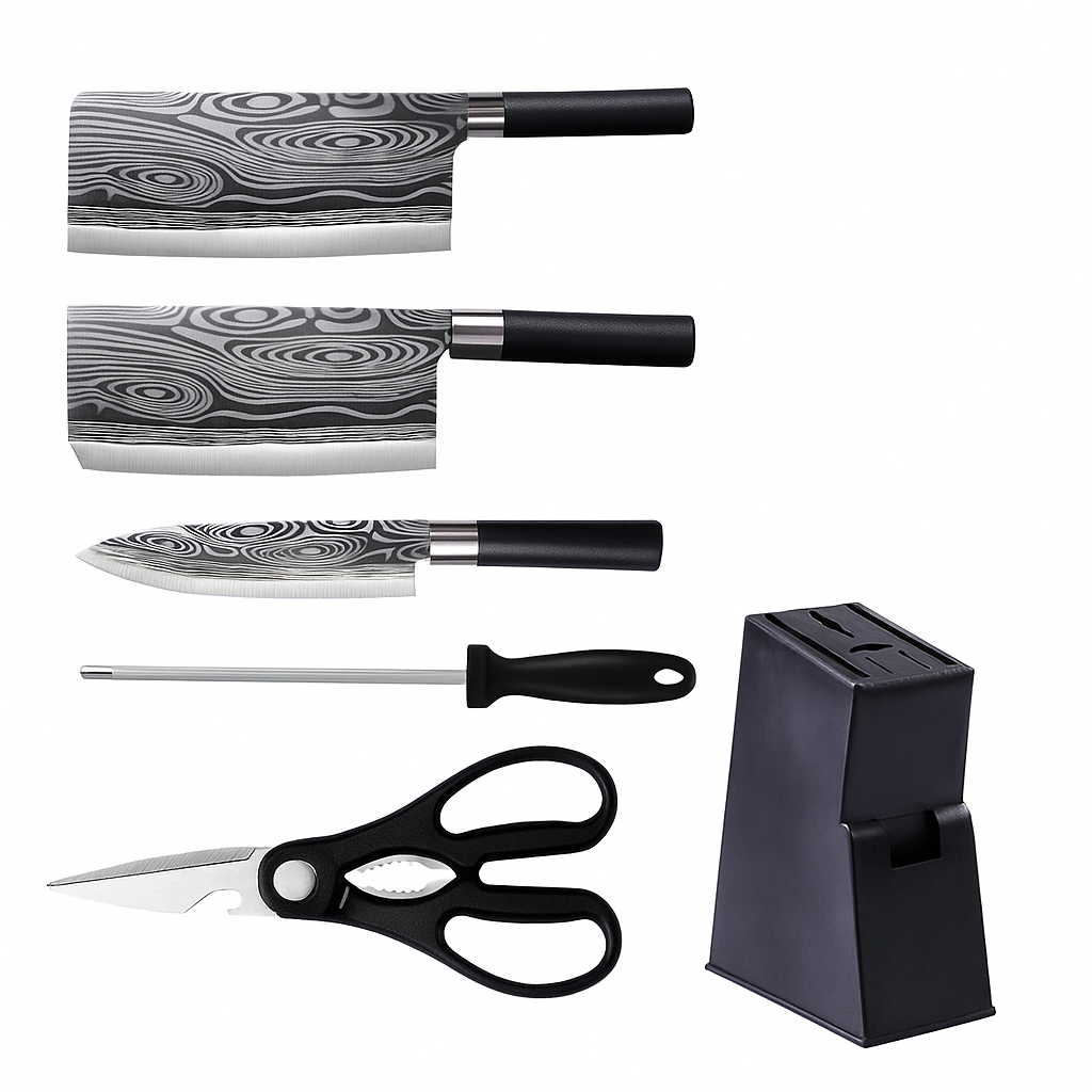 Con hojas de acero inoxidable de primera calidad con impresionantes diseños estilo Damasco y mangos negros ergonómicos, este juego ofrece una nitidez, equilibrio y atractivo visual excepcionales. La colección incluye un cuchillo de chef, un santoku, un cuchillo multiusos, un cuchillo de pelar, tijeras de cocina y un hermoso bloque de madera que mantiene todo organizado y protegido. Cada hoja está fabricada con precisión para brindar un filo y una durabilidad duraderos. Perfecto para chefs caseros, registros de bodas, regalos de inauguración de una casa o cualquier persona que quiera cuchillos de calidad profesional sin el compromiso completo de 8 piezas.