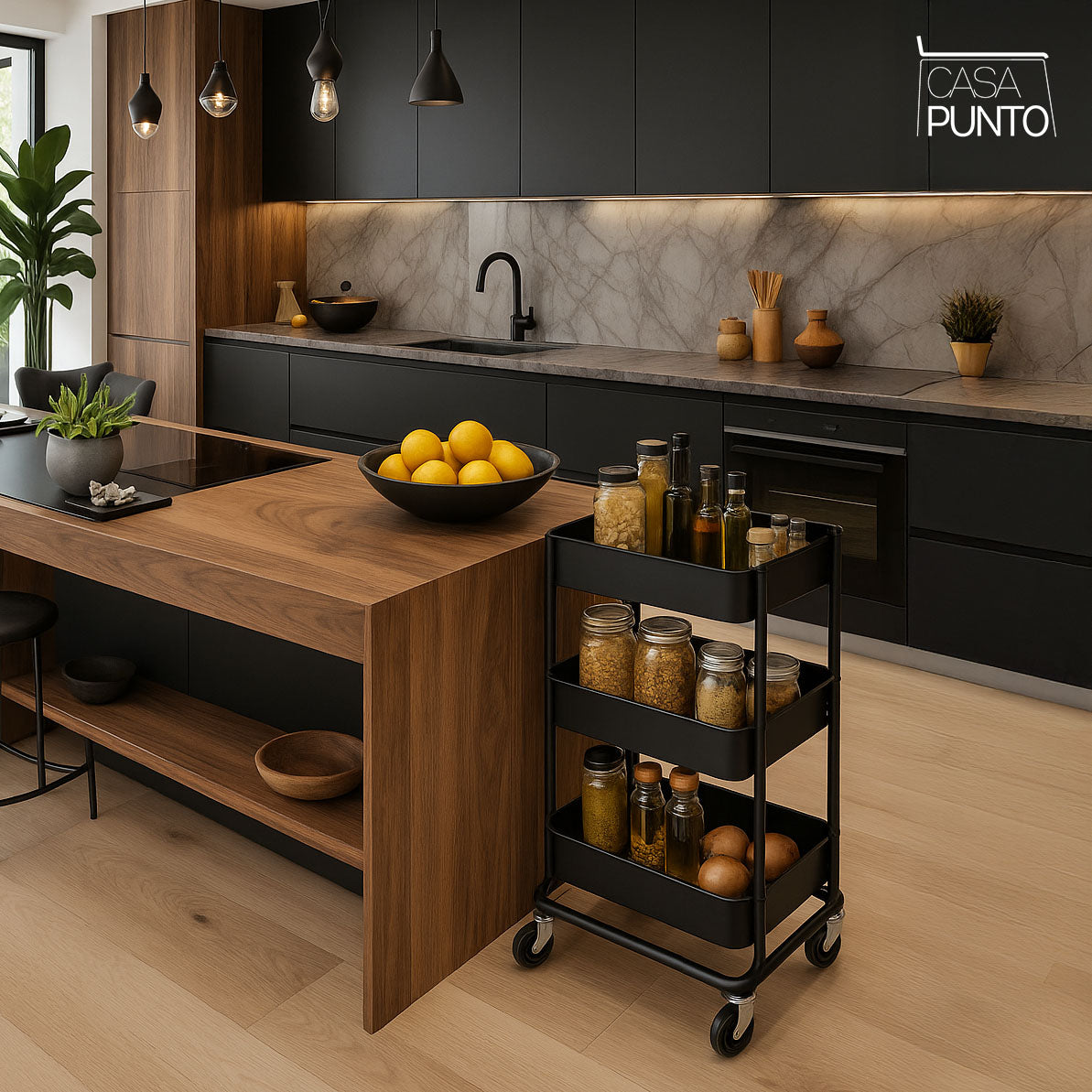 Transforma cualquier habitación en un oasis organizado. El carrito utilitario con ruedas de 3 niveles Ulla de la colección CASA PUNTO es la solución de almacenamiento versátil que se adapta a sus necesidades. Este no es solo un carrito: es el centro de comando de su organización móvil que pone orden en cocinas, baños, oficinas, salones y salas de manualidades.